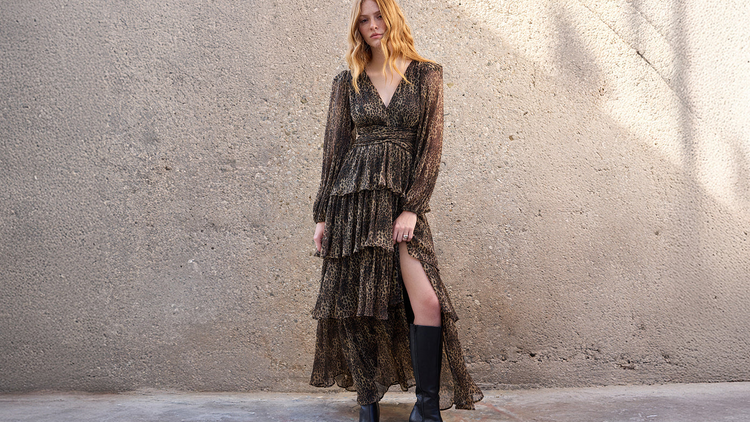 Allover pleats give graceful movement to this midi dress that is the perfect pick for weddings, celebrations, and everything in between — especially when you want to feel your best. Floral print, plunge neckline, plisse fabrication Strappy cutout back, tie strap detail, adjustable straps Concealed...