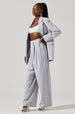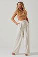 These elevated pants feature a high rise crisscross waist feature with a pleated front and slanted side pockets. Baggy fit. Wide leg.