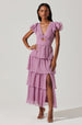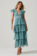 • Plunging neckline, ruffle sleeves, keyhole cutout