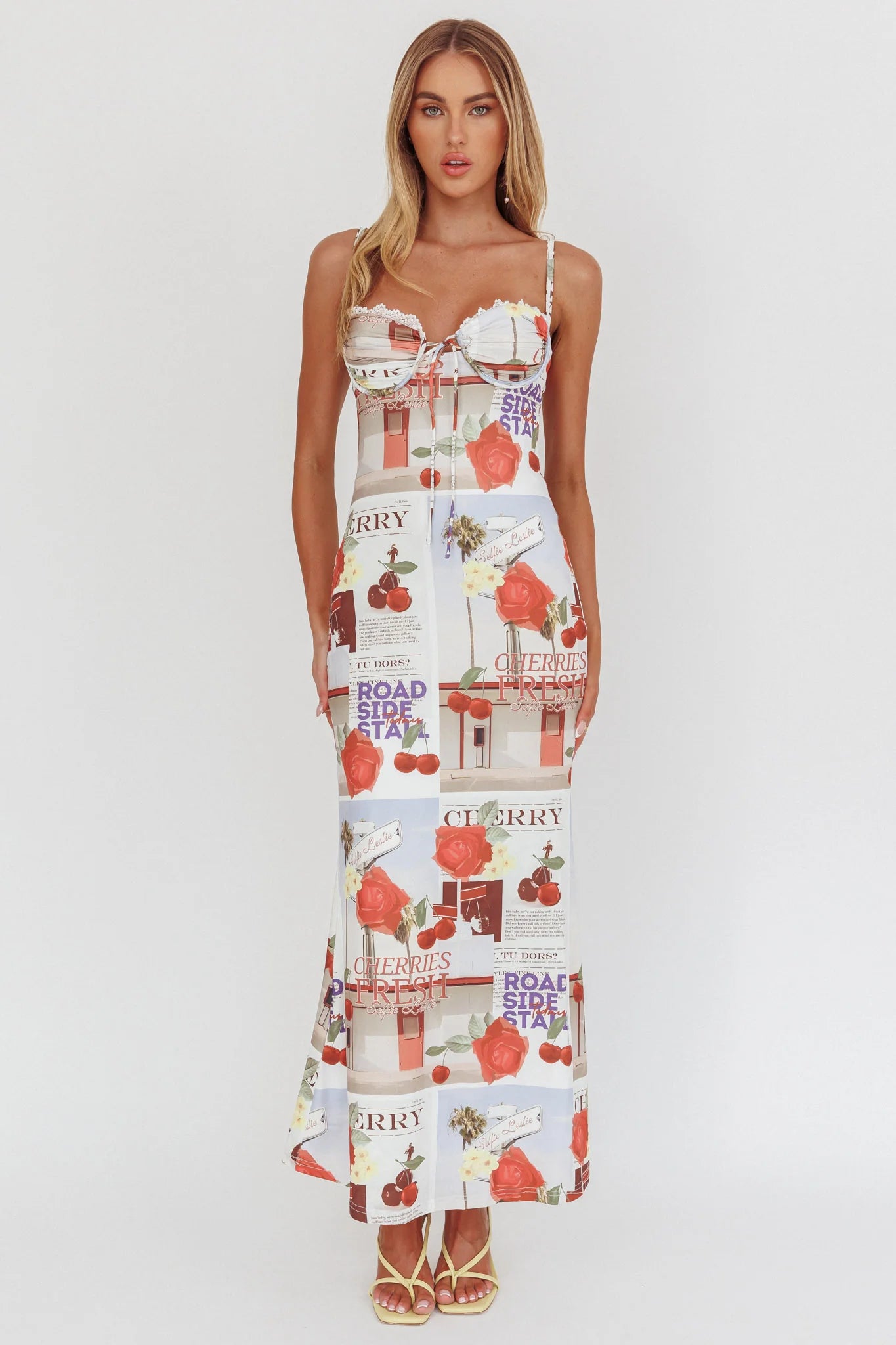 Get ready for some double takes as you walk in wearing our Fortune maxi dress. Featuring a tie in the bust and a gorgeous print, it's perfect for a fun girls' night out! Team it with perspex heels and a saddle bag for a look that's giving major It Girl vibes.