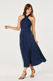 Satin Crossover Halter Midi Dress