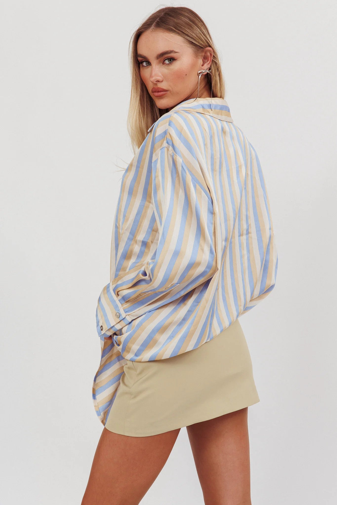 Elevate your wardrobe with of our Like The Movies button-up shirt. This shirt offers a smooth, lustrous finish that feels incredibly soft against the skin. The button-up front allows for a crisp, polished look, while the relaxed fit ensures all-day comfort and effortless style. Whether you're dressing up for a business meeting or going out for a night on the town, this versatile piece will have you looking impeccably put-together.