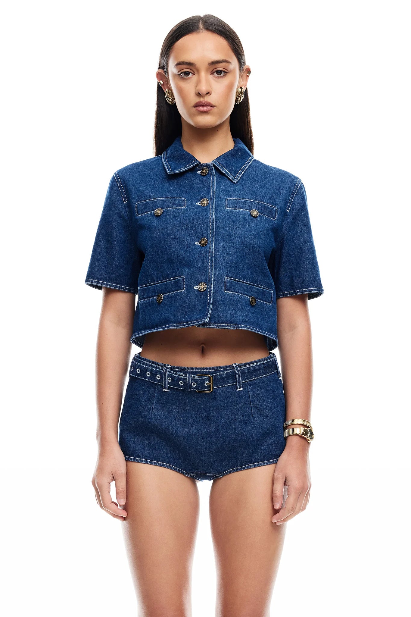 Channel your inner It Girl in the Halston top by LIONESS. It features a button-up front and contrast stitching and is begging for a night out with your girls. Team it with a satin skirt and kitten heels for an on-trend look we are loving.