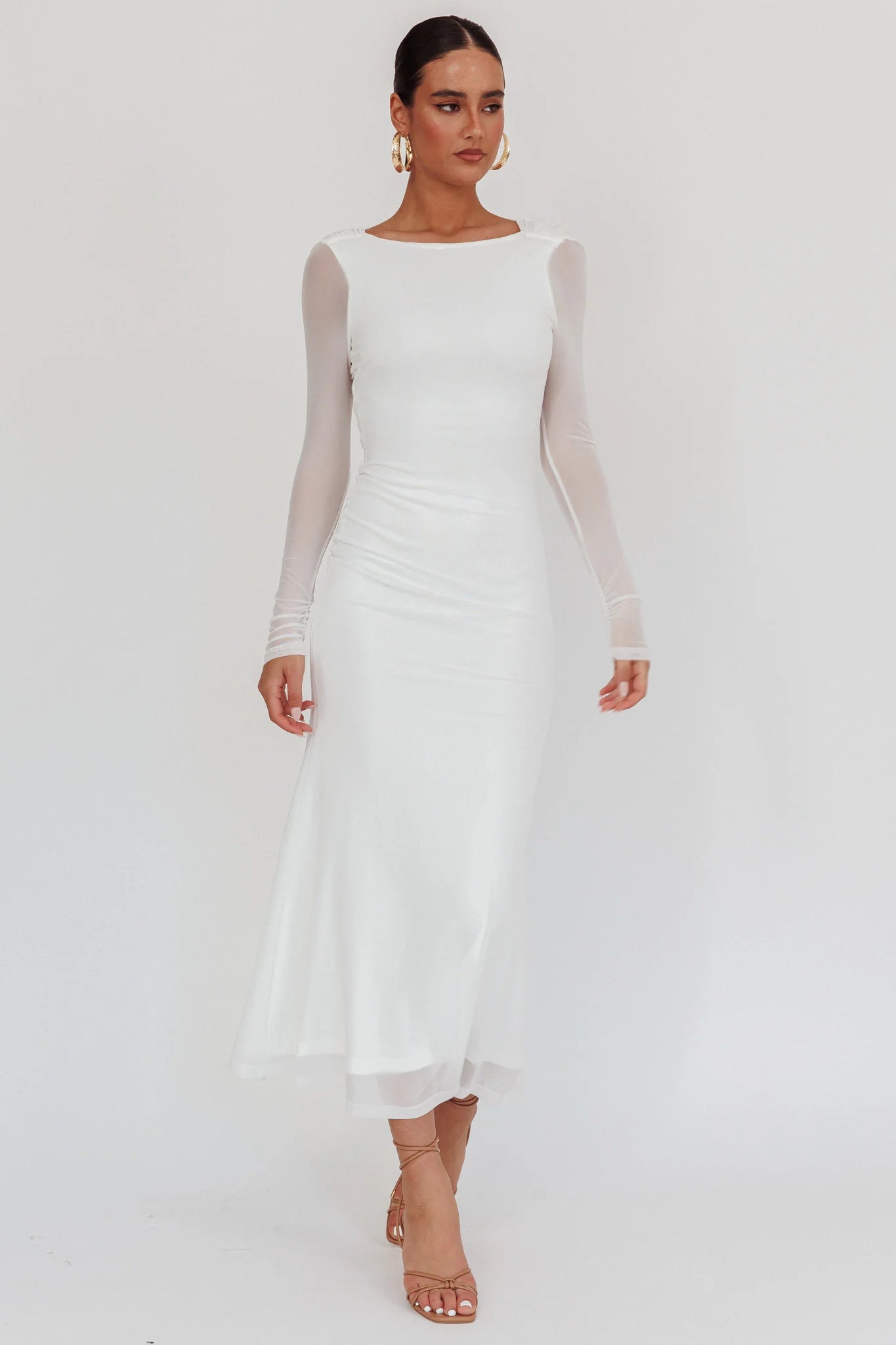 Be captivating in our Lustre maxi dress! Sure to turn heads with its crossover open back design and flattering mesh sleeves, this dress is designed to effortlessly accentuate your silhouette! Perfect for evening glamour, this dress is a must-have addition to your party wardrobe.